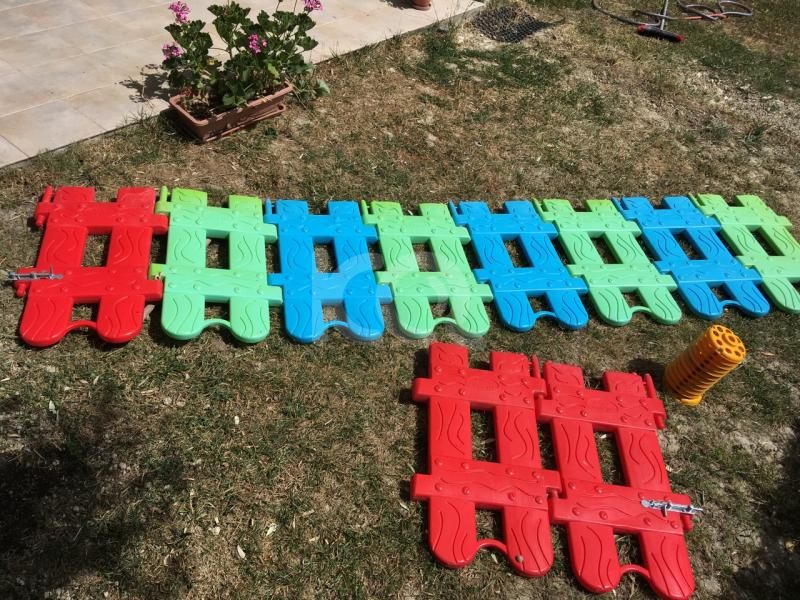 της Pilsan (μοντέλο Western Area Hedge) για οριοθέτηση χώρων σε κήπους και αυλές σε καλή κατάσταση. Σετ 10 τεμαχίων (στα δύο έχουν εγκατασταθεί σύρτες ασφάλισης που αφαιρούνται εύκολα) ύψους 79cm, με βοηθητικά εξαρτήματα πάκτωσης.