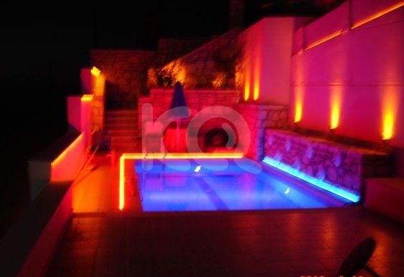 κήπο με απεριόριστη θέα στη θάλασσα, ξυλόφουρνο, bbq και πισίνα.