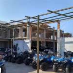 κτίριο 3όροφο, επαγγελματικός χώρος, ημιτελές, 1150τμ σε τρία επίπεδα (υπόγειο 385τμ,ισόγειο 385τμ και 1ος όροφος 385τμ) σε οικόπεδο 2200τμ, κατασκευή 2000, προσόψεως, εξωτερική περίφραξη
