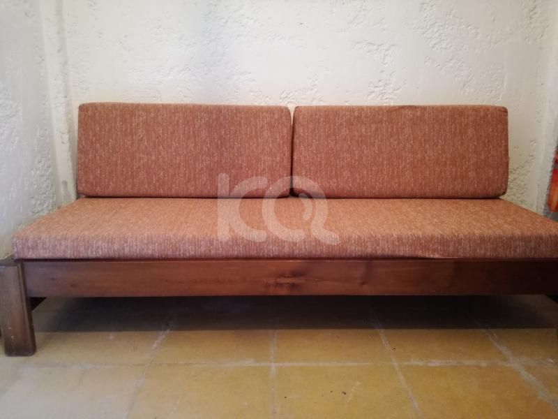 2 καναπέδες σε καλή κατάσταση, μασίφ ξύλο, διαστάσεις 1.95Χ75, ο ένας με στρώμα και μαξιλάρες που αφαιρούνται για να γίνει κρεβάτι.
